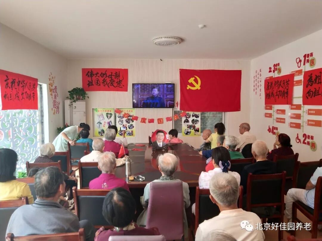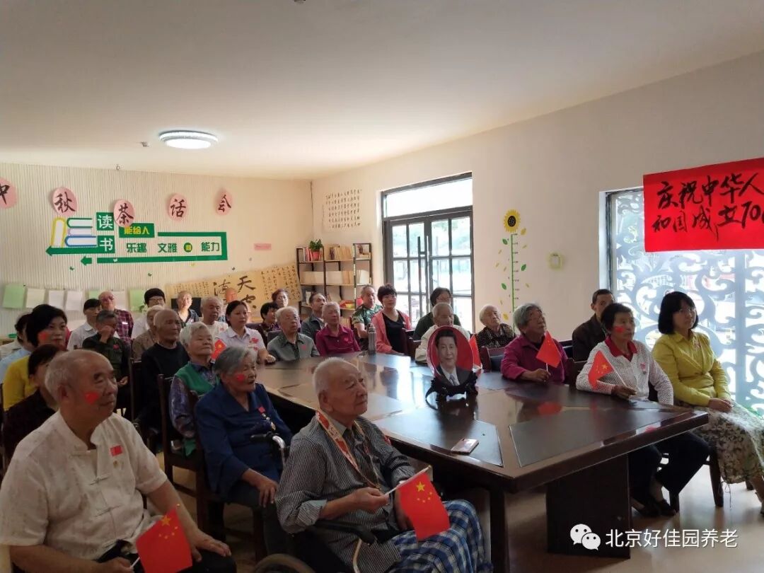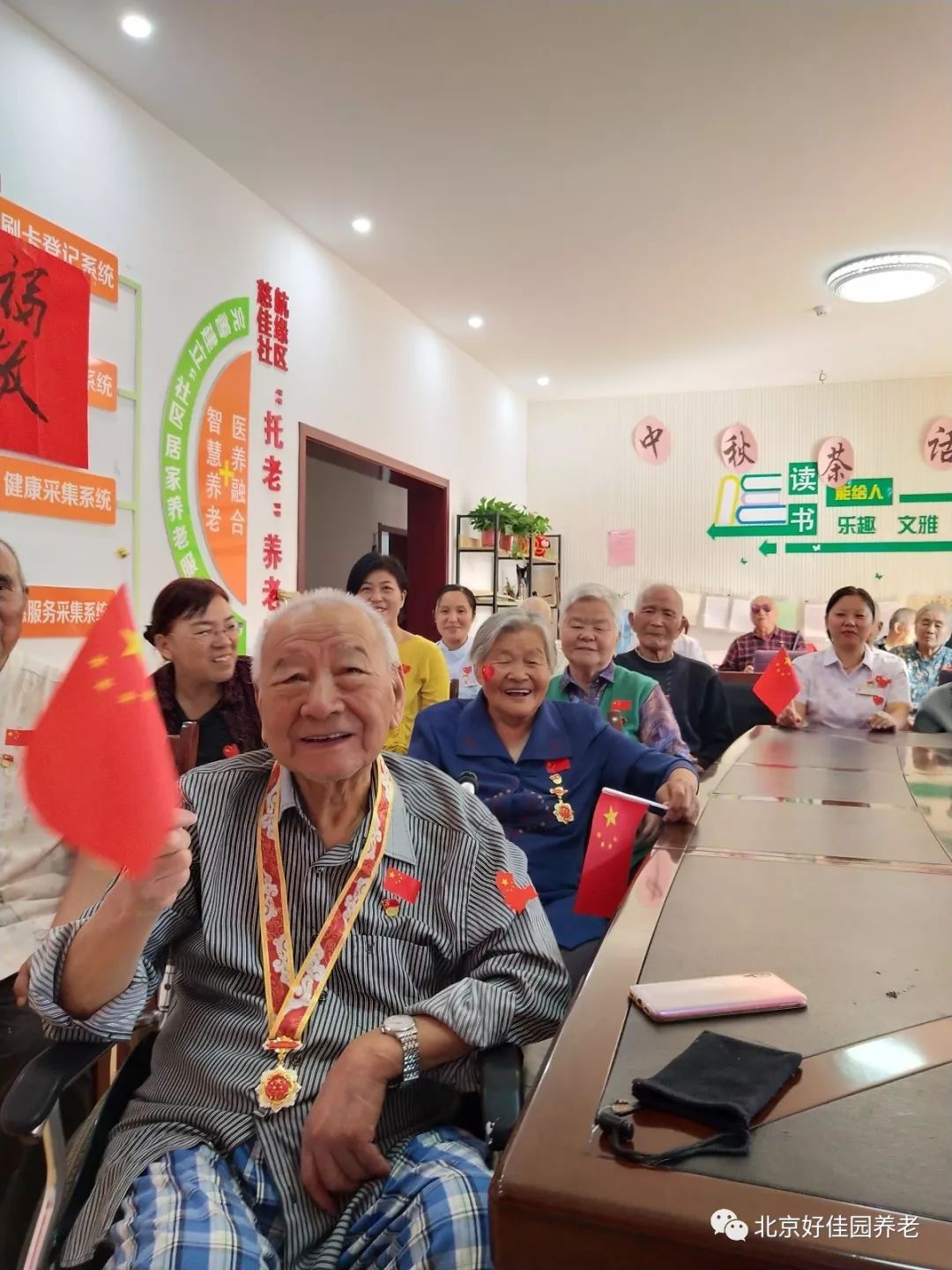 在员工和入住长者观看国庆阅兵现场,当看到受阅部队迈着整齐有力的步伐走过和各种新型装备隆隆驶过***城楼时,现场响起了热烈的掌声...... 大家感动地说,看到咱们国家的军人这么威武雄壮,心里特有安全感,就像网络上流行的一句话:那有什么岁月静好,只是有人为你日夜守卫!祖***力的强大,才有了和平安宁的环境;入住长者、历经抗日战争、解放战争和抗美援朝的老兵于福秀老人说,看到10万群众用花车方队的形式展现共和国走过的辉煌历程,心中很是感慨,自中华人民共和国共成立起,70年了,一代又一代的领导人为了共和国的发展呕心沥血,使得我们国家才有了今天的成就,我相信,在习主席新时代中国特色社会主义思想指引下,我们一定能够实现中华民族的伟大复兴!