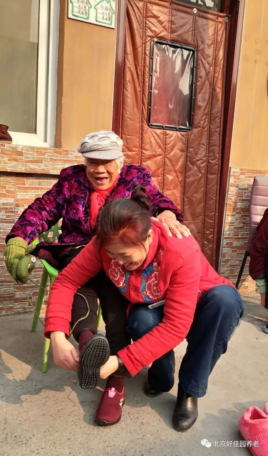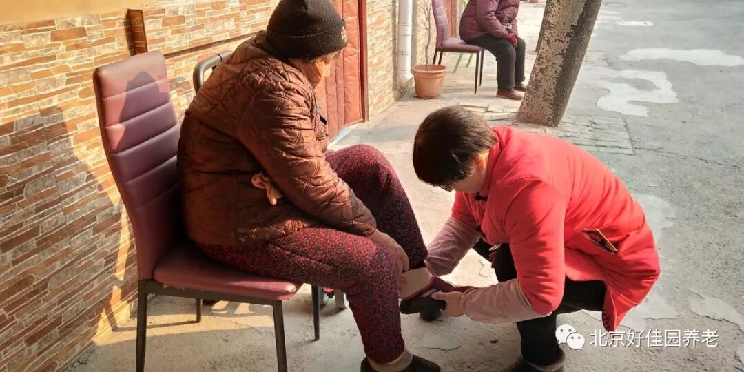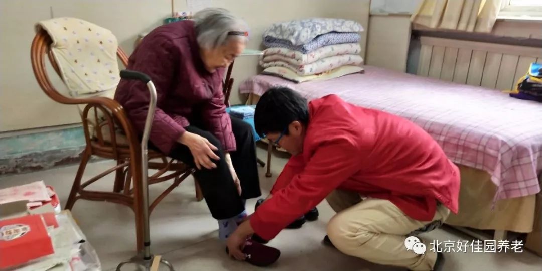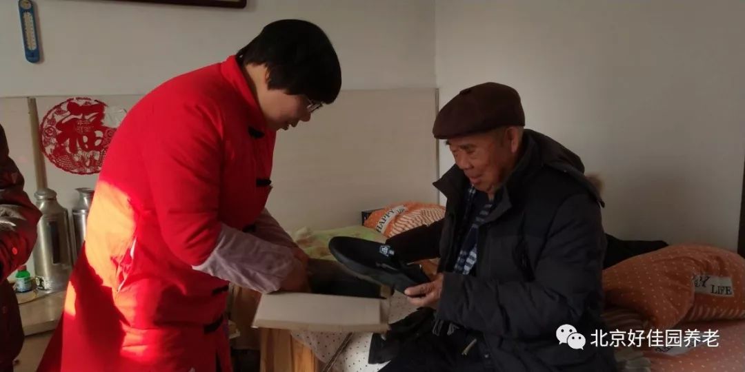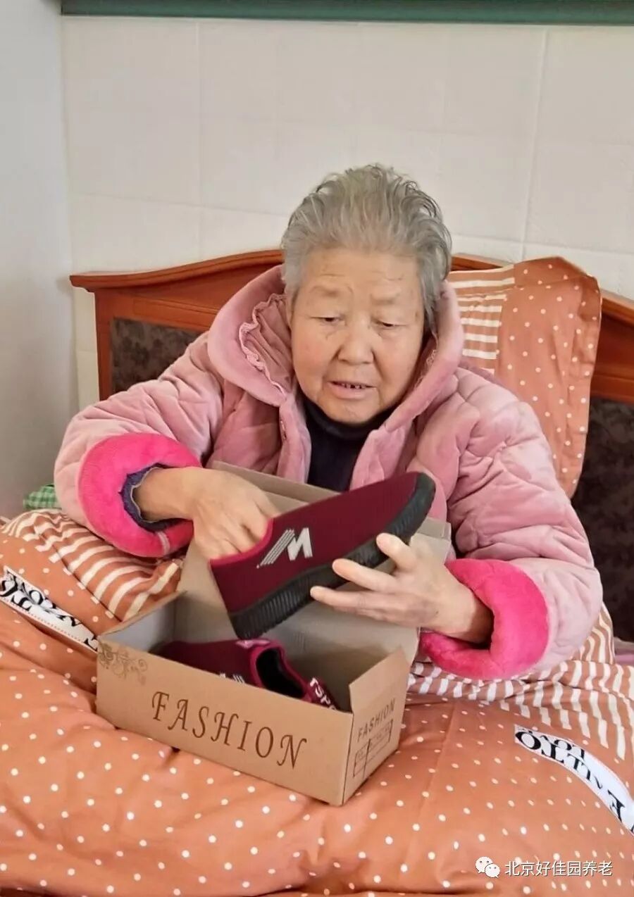 为了让每位老人都穿上合适的鞋子,护理人员耐心地询问每位老人的鞋号,还为一些行动不便的老人蹲下身来试穿新棉鞋。挑选到合心意的棉鞋的老人们脸上露出了幸福的笑容,连连夸赞新棉鞋暖和、合脚。