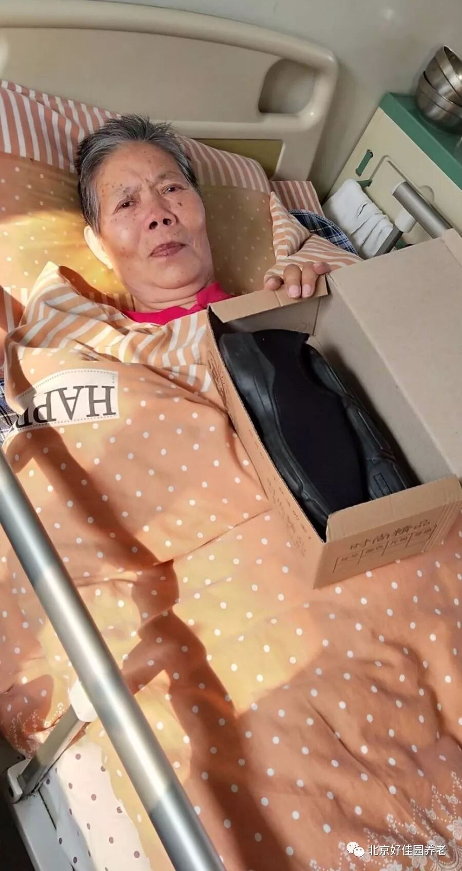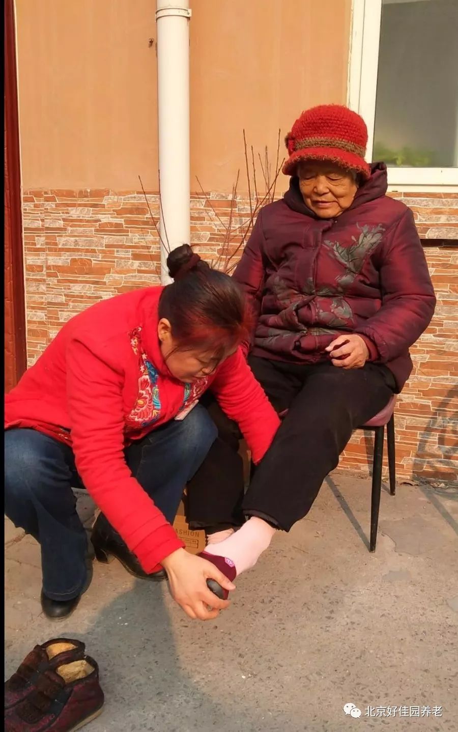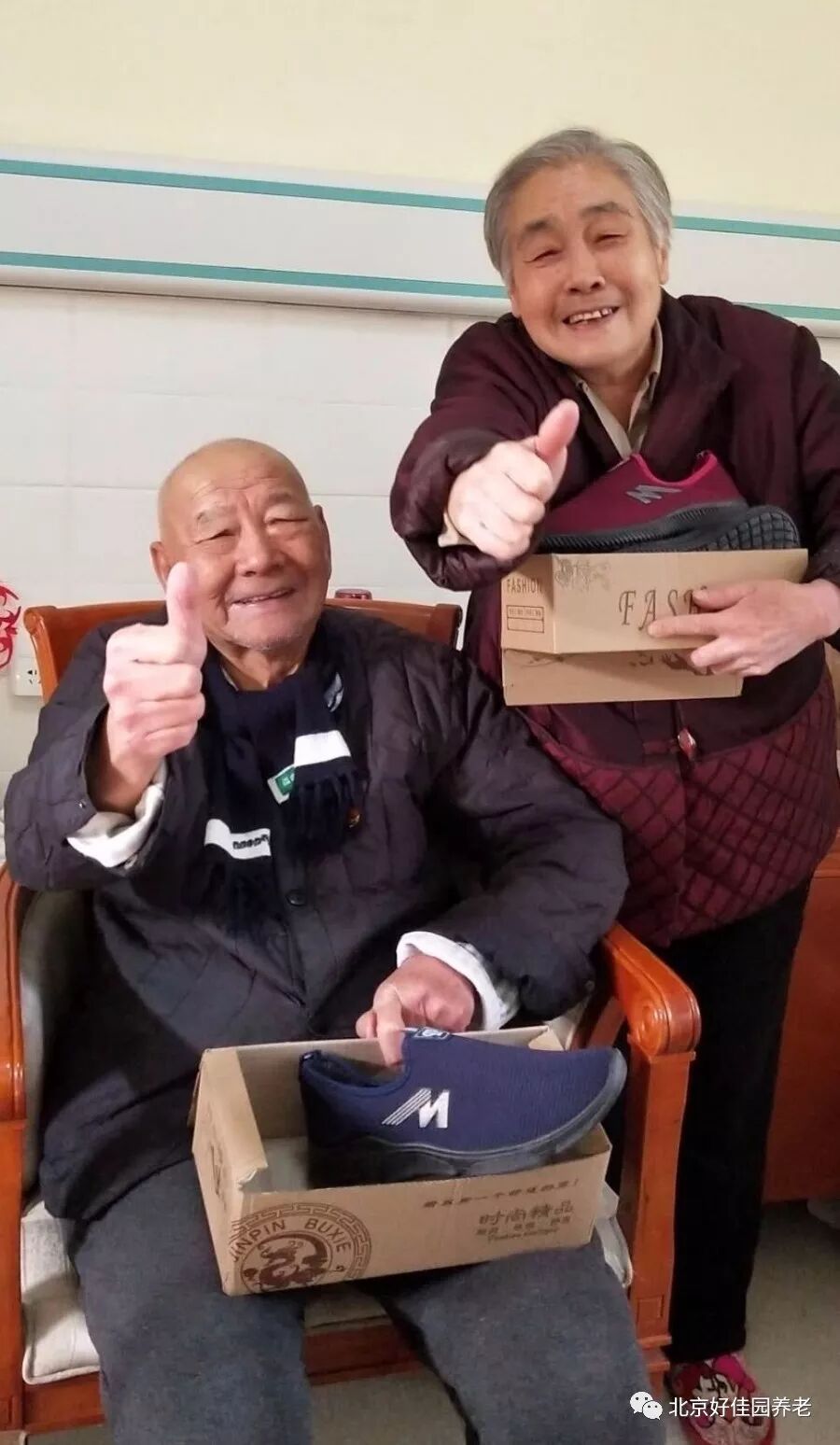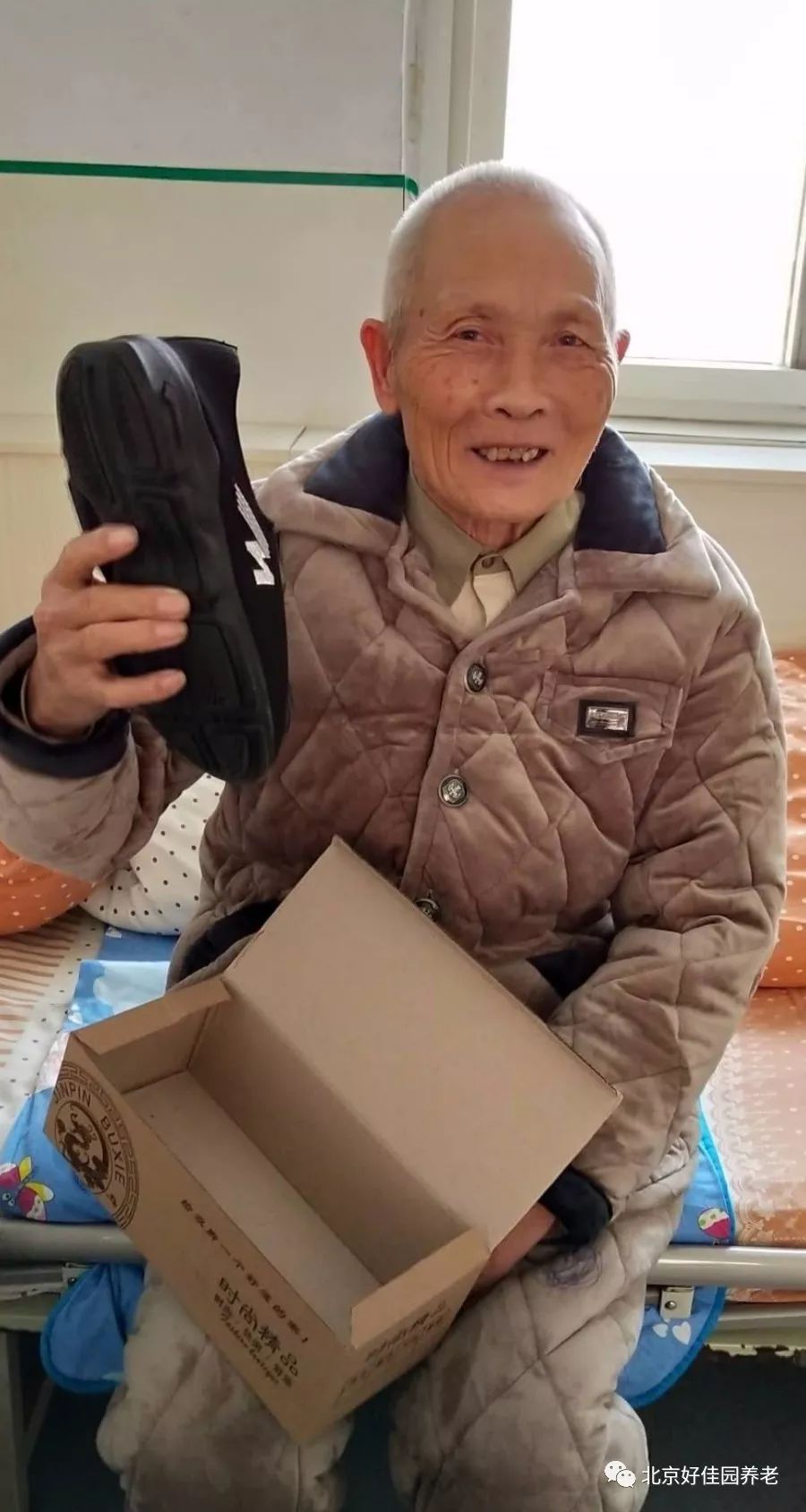 为了让每位老人都穿上合适的鞋子,护理人员耐心地询问每位老人的鞋号,还为一些行动不便的老人蹲下身来试穿新棉鞋。挑选到合心意的棉鞋的老人们脸上露出了幸福的笑容,连连夸赞新棉鞋暖和、合脚。